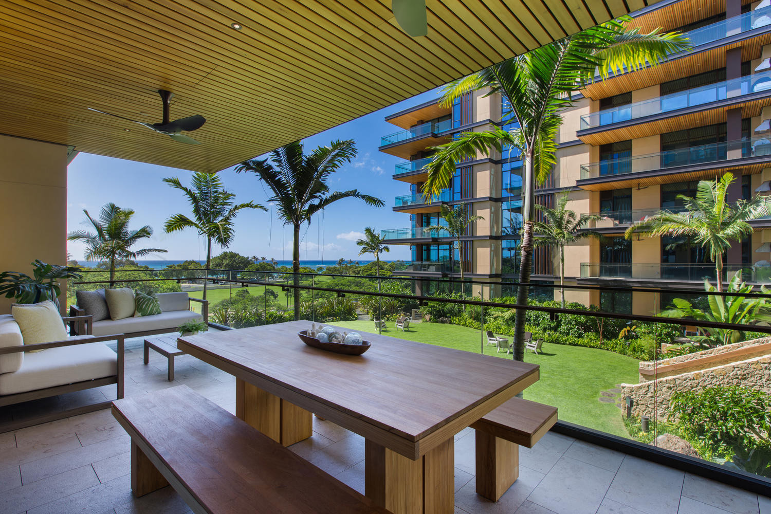 Located on the fourth floor, this suite boasts a spectacular Great Lawn and ocean views from the spacious lanai. Sliding glass doors separate the lanai from the living room, allowing the ocean breeze to sweep through the home. Barbecue at your own private grill after a fun-filled day, or enjoy cocktails as you take in the magical sunset colors in the sky.