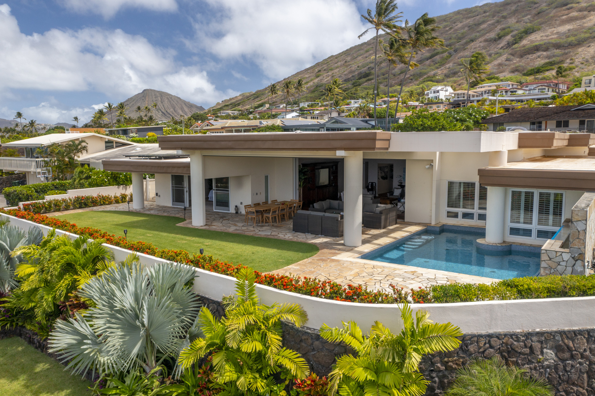 With postcard-worthy views of Diamond Head and the deep blue Pacific, this five-bedroom, seven-bath retreat blends sophisticated design with the relaxed rhythm of Hawaii Kai life.