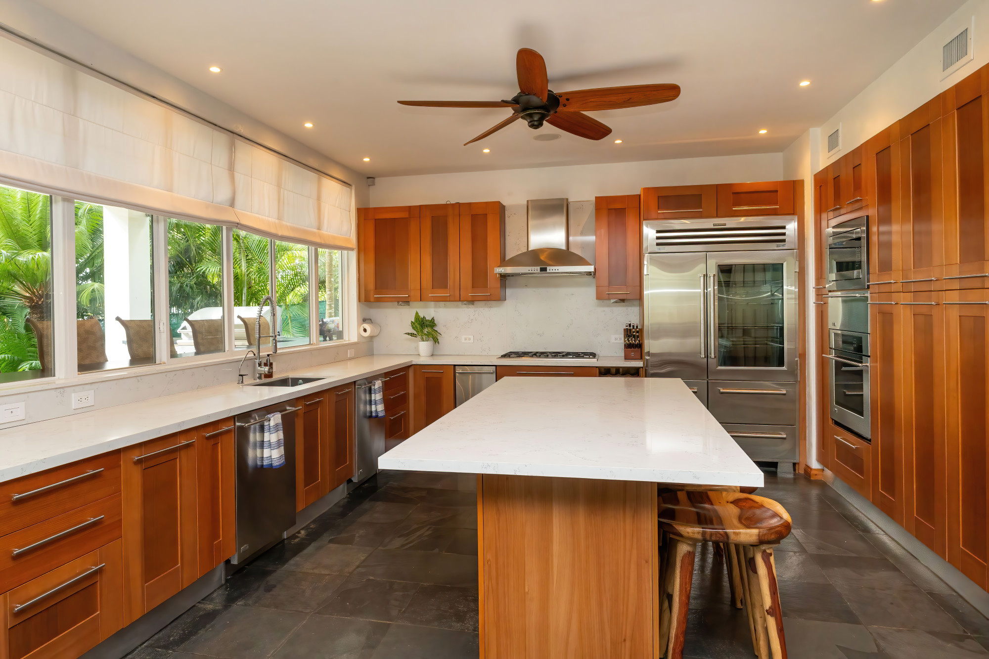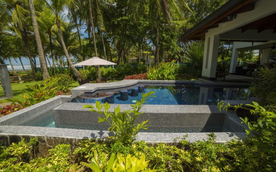 Villa Victoria embodies the true essence of a first class tropical luxe-home. With thoughtful details throughout the home, guests will enjoy the courtyard for outdoor dining, 6 spacious bedrooms, central A/C, luxury finishes, lush gardens, and a professional-grade gourmet kitchen and outdoor BBQ and covered beachfront dining, where you can grill to your heart's desires, or allow for our Chefs to delight you with their creations. Spaciously spread out over 6,500 square feet and showcasing a beachfront infinity edge pool with swim-up bar, Villa Victoria will host your ideal tropical vacation experience. The home has been defined as the "ultimate beachfront villa" providing the perfect lay-out and amenities for groups of up to 12 people. Those looking for an exquisite Costa Rica luxury rental should look no further-This designer villa has it all and is the perfect home-base for an unforgettable Costa Rica vacation experience.