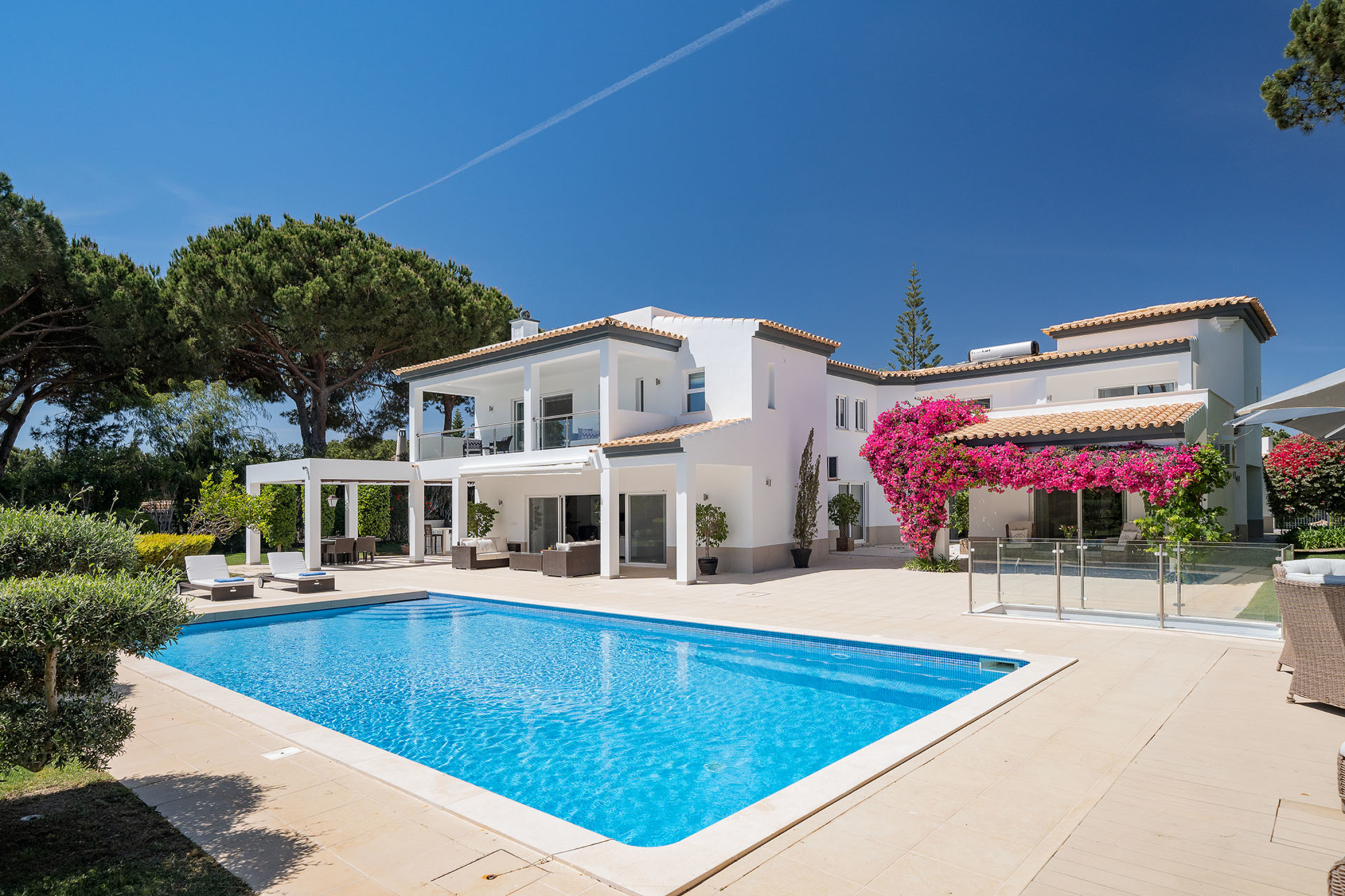 This stylish modern property boasts elegant interiors with a classic taste and can accommodate up to 10 guests over two floors. With spacious indoor communal areas and ample outdoor space with both shaded and open terraces protected by mature trees ensuring guests' privacy at all times, this property lends itself to easy living under the Algarvean sunshine and is perfect for a family beach and golfing holiday.