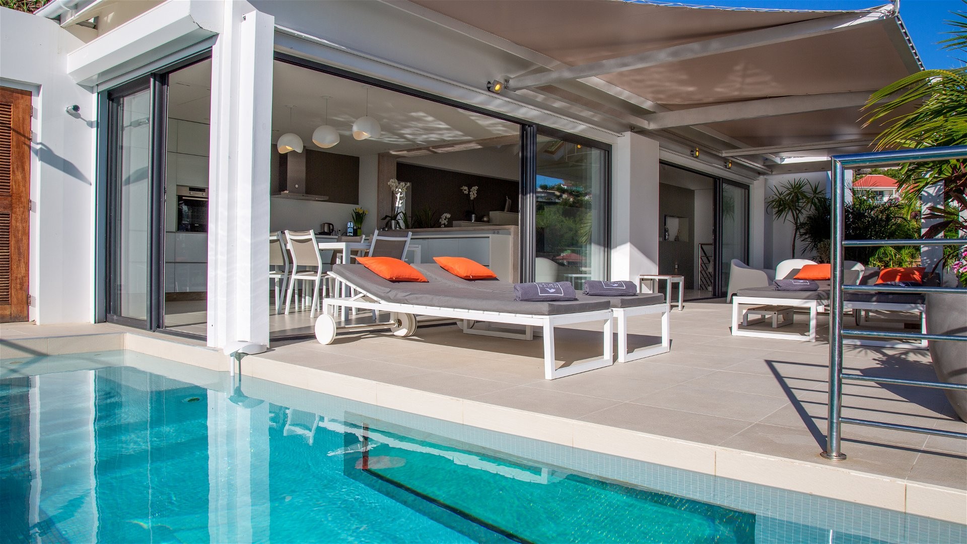 Outside, there is a nice heated swimming pool surrounded by deckchairs for sunbathing sessions in the gentle sea breeze, as well as an outdoor lounge located under the covered area where you'll love to talk and rest, in the heart of the tropical vegetation that brings both freshness and delight. In the evening, you'll enjoy delicious grilled meat prepared on the barbecue at your disposal.