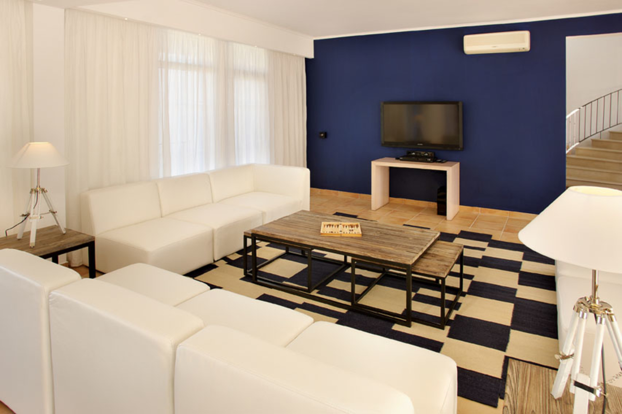 Modern and minimalist in style yet very well equipped, all 10 bedroom suites are air-conditioned and individually furnished and have either a private balcony or a terrace, TVs, hairdryer, telephone and safe. But the property also boasts a communal bar area, a modern and fully equipped kitchen with open plan dining room, an outdoor terrace with BBQ for eating "al fresco", a wine cellar where it is possible to arrange private wine tastings, a fully equipped gym, an outdoor Jacuzzi and a sauna. The landscaped garden surrounding the villa totals 2,500 square meters and looks especially attractive when floodlit in the evenings, with the cascading Jacuzzi feeding into the swimming pool.