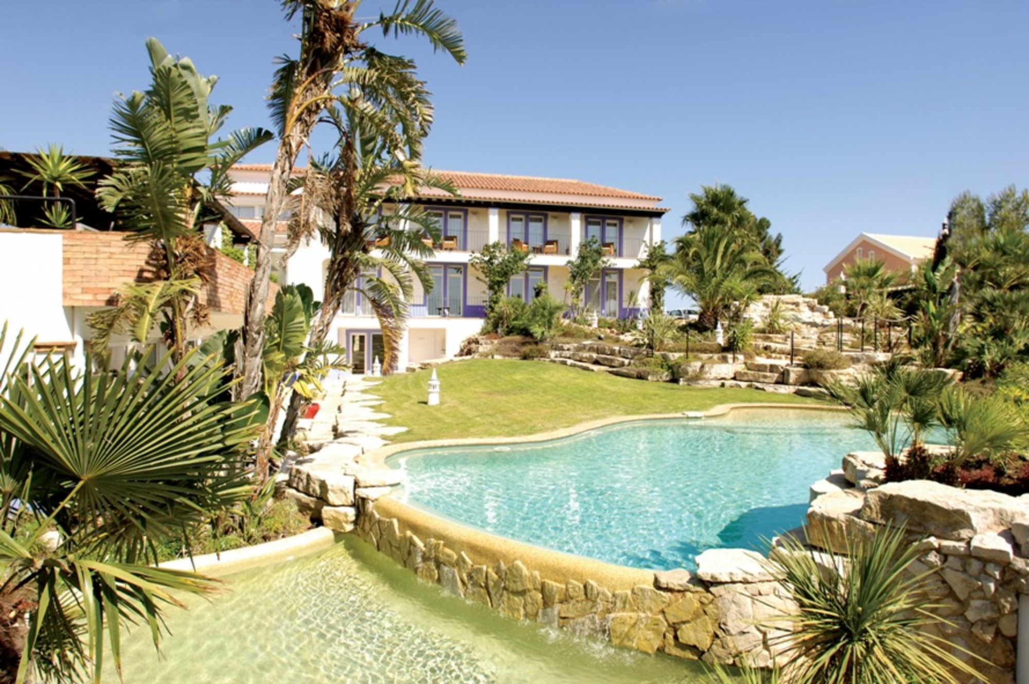 The town of Lagos and the village of Praia da Luz nearby have a good choice of restaurants, bars, and extensive nightlife. There are some lovely beaches to choose from in the area - the sunny Algarve coast (south and west) is the perfect location for practicing water sports from surfing, water skiing and windsurfing off the beach, to sailing, diving, deep-sea fishing, motor, and sailboat cruises, centered around the bustling star Marina de Lagos. Golf is available close by at Boavista, Palmares, and Parque da Floresta courses, as well as others further afield. Alternatively, jeep safaris, horseback riding, tennis, clay pigeon shooting, lawn bowling or micro-light flying can also be arranged.