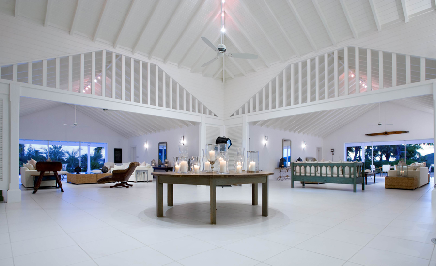 Fresh, modern and elegant with splashes of British personality, each of the seven bedrooms at Palm Point feature vaulted ceilings, all-white interiors and French doors with views of the brilliant blue Caribbean Sea and exotic gardens.