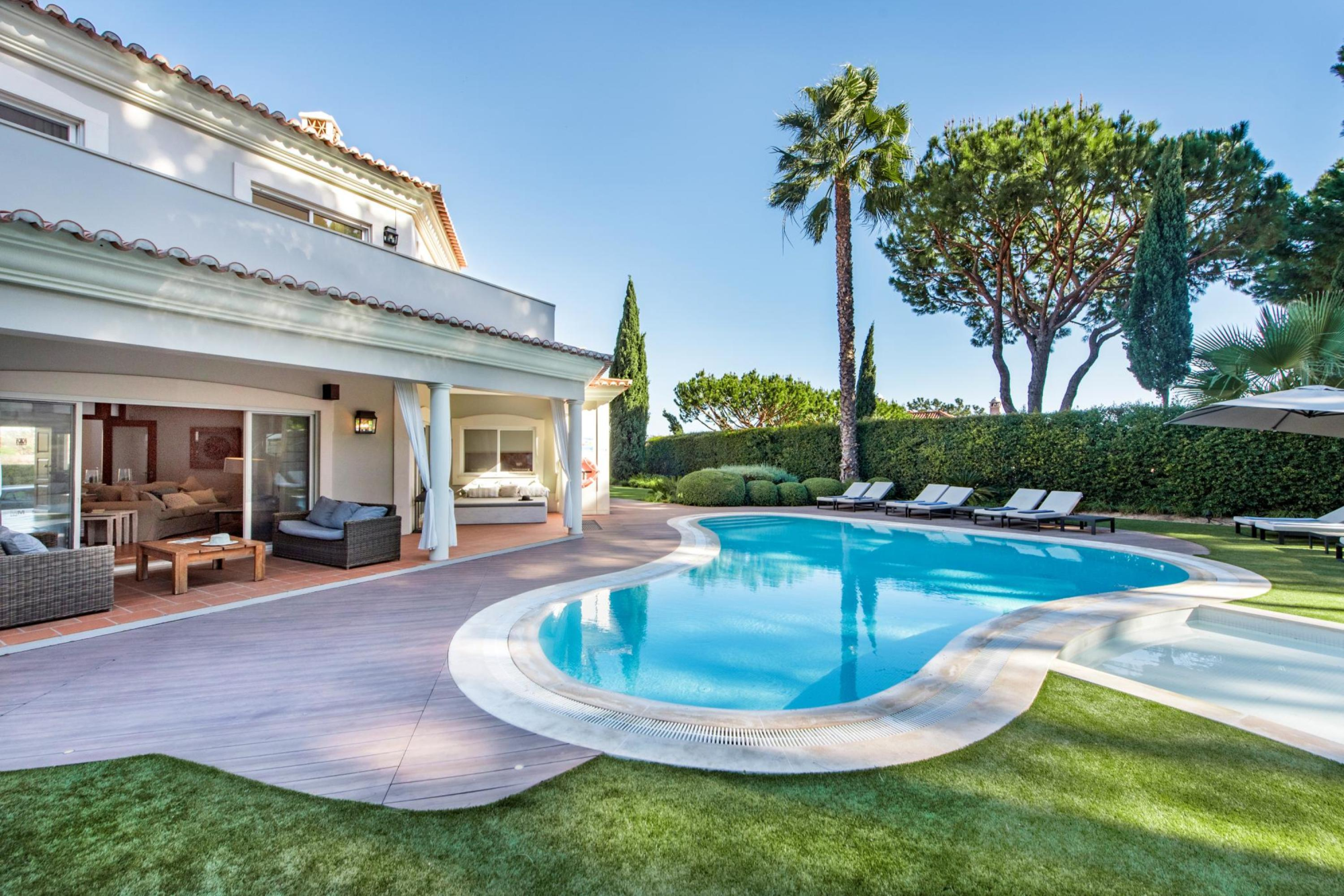 Villa Alegria is furnished to a high standard, with many thoughtful touches by the owner. There are five en-suite bedrooms and for an additional charge there can be a further sixth bedroom on the lower level - the room is intended as a play room for children, but can be used as as additional bedroom if required. There is a delightful garden with several pleasant areas in which to relax, whether it's for barbecue meals on the covered terrace or soaking up the glorious sunshine. Quinta shopping and Buganvilla Plaza are walking distance - shops, bars, restaurants, disco, pharmacy and a supermarket are at your convenience.